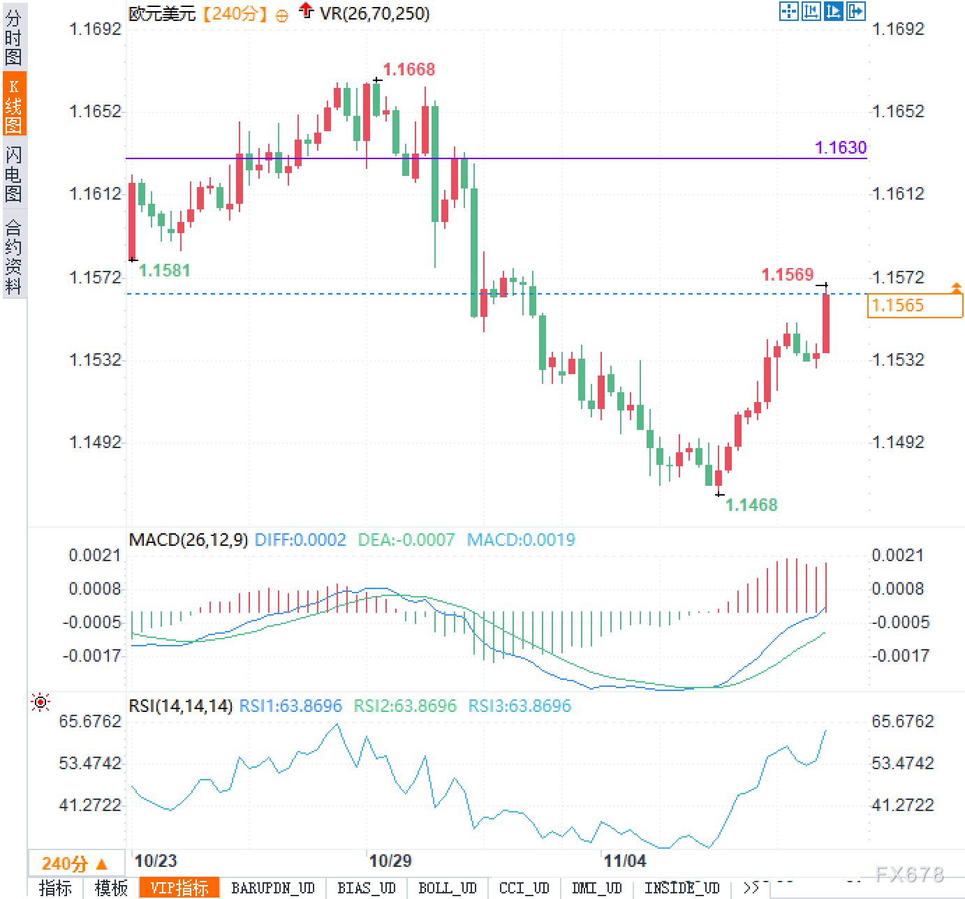 宏观层面看,本周影响外汇市场的核心变量集中在两端:一是美国宏观与政策预期的再校准,二是欧元区基本面与价格结构的背离修复。美国方面,私营部门就业指标显示10月净岗位减少,叠加企业削减成本与人工智能相关的用工替代预期升温,强化了“增长放缓”的市场叙事。衍生品定价反映,12月美联储降息的隐含概率由前一日的62%抬升至约67%,但仍低于上周会议前曾超过90%的水平。其内在逻辑是:若缺乏权威通胀读数与非农等关键观测,美联储在年底进一步宽松的证据链并不充分。芝加哥联储主席近期表态亦强调,在数据真空下贸然调整政策并不稳妥,这在边际上压制了对快速降息的乐观预期。 对汇率而言,利差预期是最直接的传导渠道。若市场认为美联储在12月降息的把握不及此前所想,那么美元的系统性下行空间被削弱,欧元兑美元的反弹更可能呈现震荡式而非单边式。然而,美元指数当日回吐涨幅、日内转负的事实,又说明资金在无锚数据期更愿意通过先行减仓美元多头来降低暴露。两股力量的合成结果,是欧元兑美元在1.15—1.16区间内高频换手,价格对消息的弹性增大但趋势延续性减弱。 欧洲方面,基本面信号同样呈现“冷热交织”。此前服务业活动读数回暖,为欧元资产情绪提供了短暂支撑;但随后公布的9月零售销售意外收缩,提示内需修复仍不牢固。德国方面,9月贸易顺差缩至153亿欧元,低于市场预估,出口改善被更快的进口扩张所抵消。这组数据的组合效应是:欧洲央行的再通胀难度不小,增长动能与价格中枢并未同步抬升,市场对欧洲央行延长观望期的定价偏多。对欧元而言,这种“低增长、低通胀、长时间观望”的配置并不天然友好,但在美国数据黑窗与美元多头回补的短期背景下,负面影响被对冲,汇价更多体现为边际修复。 展望层面 接下来几个观察点值得持续跟踪。第一,密歇根消费者信心与通胀预期能否成为通胀锚的有效替代,若对通胀预期的读数上行,可能抬升对美联储继续谨慎的判断,利好美元阶段性反弹;若回落,则有利于维持“年底小幅宽松”的设定,压制美元。第二,美联储与欧洲央行官员的当日讲话在数据真空期的指引价值更高,若美联储侧重“等待更多证据”,而欧洲央行强调“谨慎停留”,则利差预期的净变化有限,欧元兑美元仍偏向区间。第三,欧元区后续高频数据若延续分化,市场可能以更高的风险溢价要求来定价欧元资产,限制汇价上行的连续性。第四,全球股市在估值分歧未解前仍易于剧烈震荡,风险偏好对美元与避险货币的牵引将保持时强时弱的节奏,这种“断续的避险脉冲”一般更有利于区间波动而非趋势延伸。 综合来看,当前欧元兑美元的核心逻辑是“利差驱动不足、数据锚缺席、仓位因子主导”。美国端的降息预期有所反复,使美元失去单边优势,但欧洲端的增长与需求约束又限制了欧元的独立定价能力。 技术方面 4小时图显示,欧元兑美元自1.1668一路回落至1.1468后展开修复,现报1.1565。价格已回到短期均衡区1.1530–1.1580附近,前高1.1569形成即时压力,1.1630为上一轮下破位的更高层阻力。MACD快慢线向上收敛并伴随柱体转正,动能由空转多;RSI升至约64,动量偏强但临近高位区,节奏易放缓。下方关注1.1530的回踩表现,进一步是1.1490的密集成交带。整体仍属自1.1468启动的反弹内部波动,后续方向需观察量能配合与关键位是否产生有效突破。